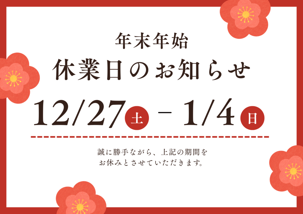 『 年末年始休業のお知らせ 』